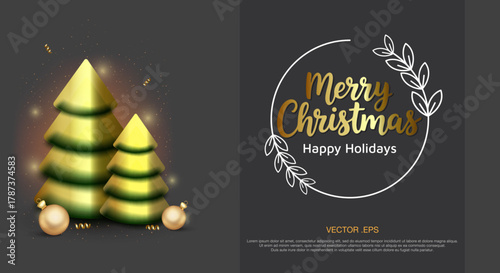 Realistic Merry Christmas celebration banner, handwritten text with Christmas elements decoration