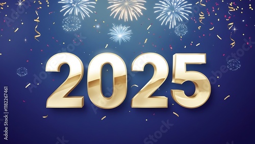 Realistic Metallic Gold 2025 Happy New Year Text – Stunning 3D Typography