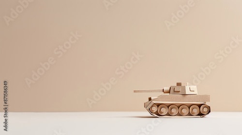 Realistic miniature cardboard tank model, highly detailed, isolated background, studio lighting, intricate craftsmanship, perfect for display