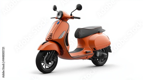 Realistic mockup of a vintage-style orange scooter or front three-quarter angle, isolated on white or transparent background