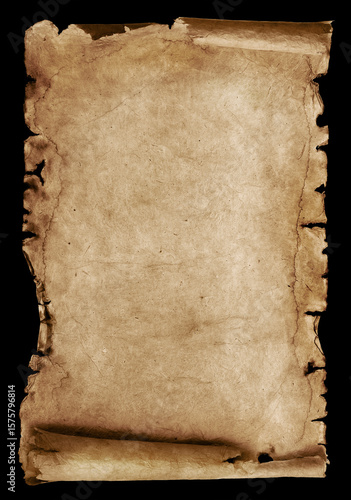 Realistic old parchment with curled edges and aged paper texture isolated on background