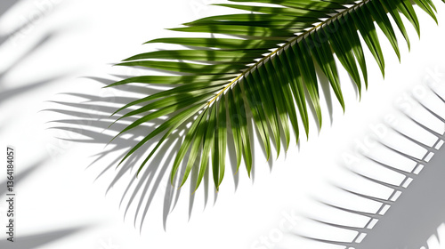Realistic palm leaf shadow overlay effect isolated on white background, Natural shadow of tropical palm branch. Mockup of transparent shadow for product presentation, backdrop, Design elements, PNG