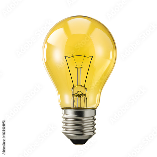 Realistic Photo of a Yellow Lit Lightbulb Against a White Background