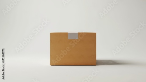 realistic photo of brown cardbox ca 2' x 2', frontal, low camera position, white background