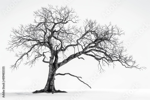 Realistic photograph of a complete Spooky trees,solid stark white background, focused lighting