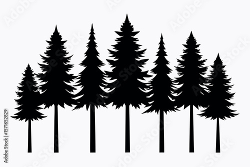 Realistic Pine Tree Silhouettes – Flat Black Forest Vector Trees on White Background