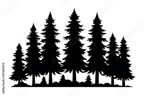 Realistic Pine Tree Silhouettes – Flat Black Forest Vector Trees on White Background