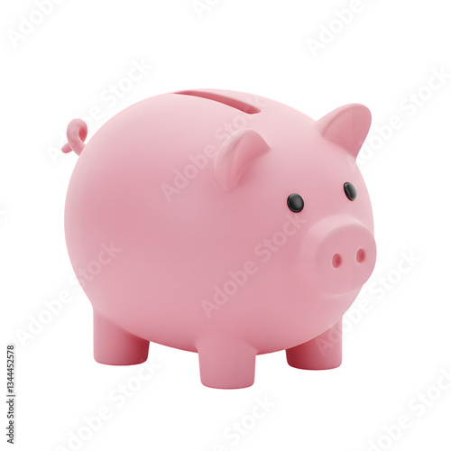 Realistic Pink Piggy Bank with Coin Slot Isolated on PNG Background.