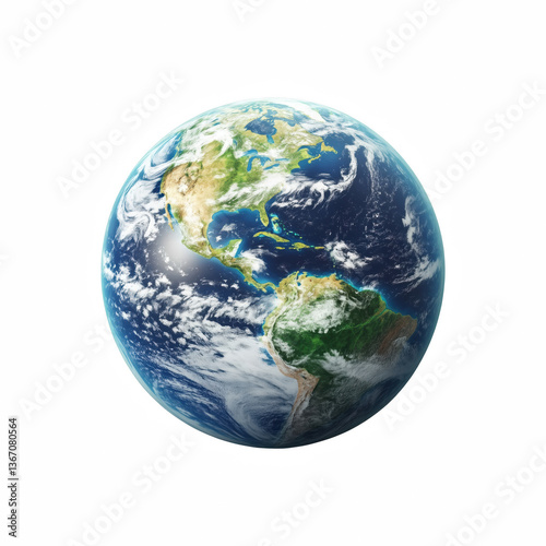 realistic planet Earth from space showing Americas and Atlantic Ocean isolated on transparent background.