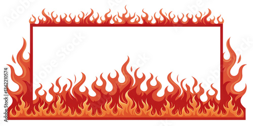 Realistic Red Hot Fire Flame Border Frame – Transparent PNG Burning Fire Frame with Glowing Flames – Isolated on Transparent Background
