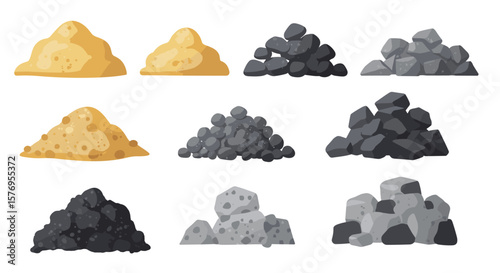 Realistic rock and sand piles collection for construction and landscaping projects