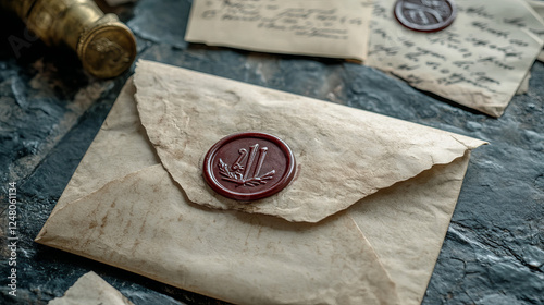 Realistic set of retro paper mail isolated on transparent background. Vector illustration of open and closed envelopes with red wax stamps, blank letter or postcard template. Secret love message