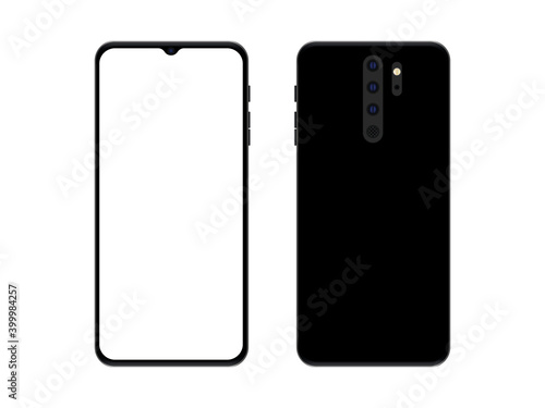 Realistic smartphone mockup with empty screen. Front and back view for print, web, application. Vector