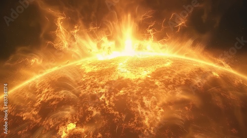 Realistic Solar Storm at Sun Surface close up from sun High Resolution Astronomical Image astral