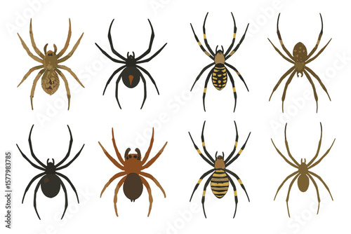 Realistic Spider Vector Illustration Collection, Diverse Spider Species, Isolated on White, Educational, Halloween, Web Design, Nature, Science, Insect Set