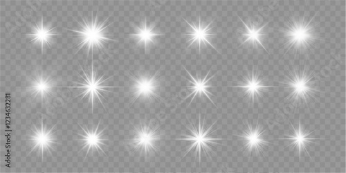 Realistic sun rays. Sun ray glow abstract shine light effect starburst beam sunshine glowing isolated image. Lights flare, star flash light, white sun rays, png.