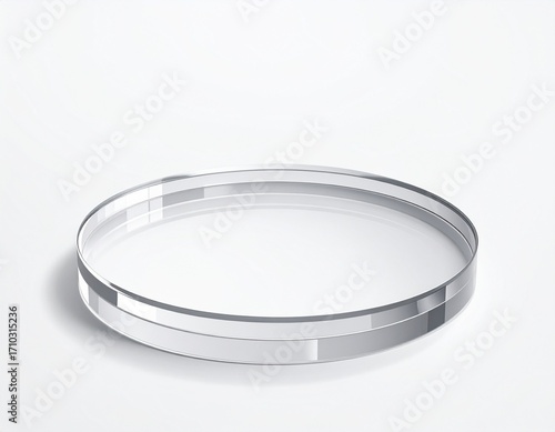 Realistic Transparent Acrylic Round Plate with Glossy Reflections – Empty Design Frame Template Isolated on White