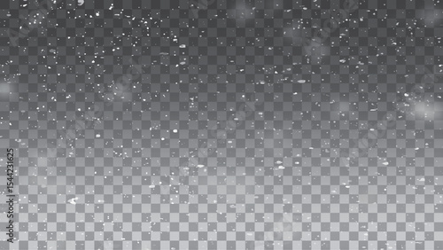 Realistic vector falling snow fall overlay. Shining snowflakes background.