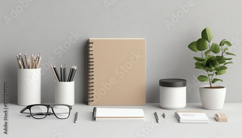 Realistic vector illustration of a stationery composition featuring an isolated notebook, simple blank background, ideal for branding and product mockups