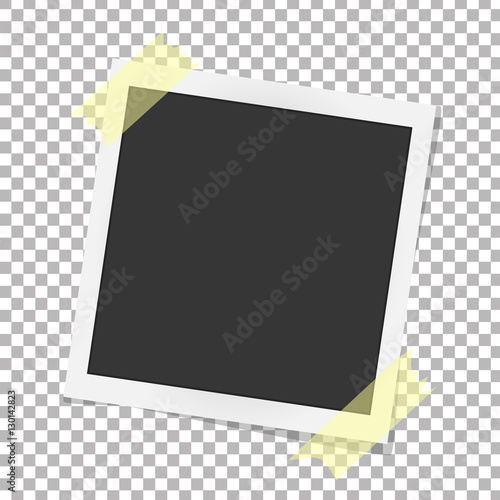 Realistic vector photo frame on sticky tape. Template photo design. Vector illustration