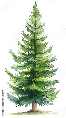 realistic watercolor vector element tall dark woodland pine tree symmetrical