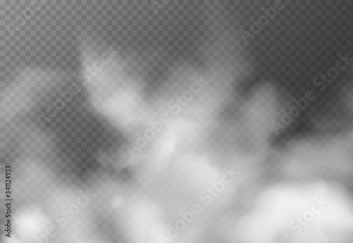 Realistic white fog or smoke isolated on transparent background. Atmosphere mist effect and smoke clouds special effect.
