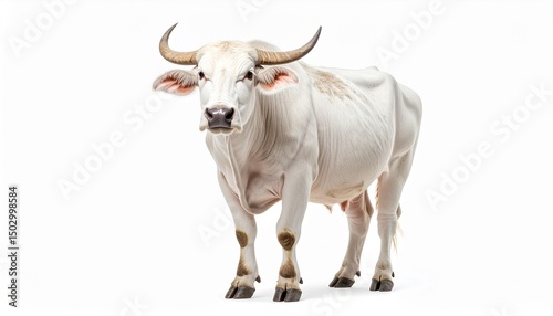 Realistic White Water Buffalo Standing Isolated on Pure White Background