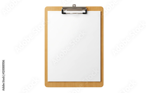 Realistic Wooden Clipboard with Blank A4 Paper Mockup on Transparent Background