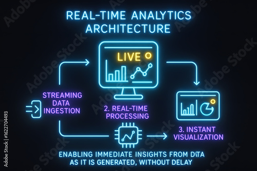 Real-time Data Analytics Dashboard Infographic with Neon Metrics for Business