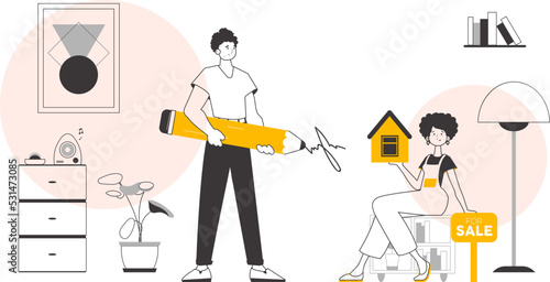 Realtor team. Linear trendy style. Vector.