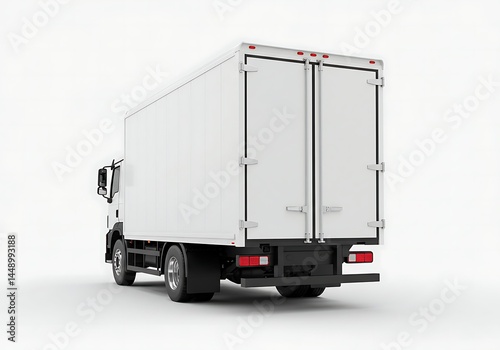 Rear Perspective of a White Delivery Box Truck Isolated on a White Background