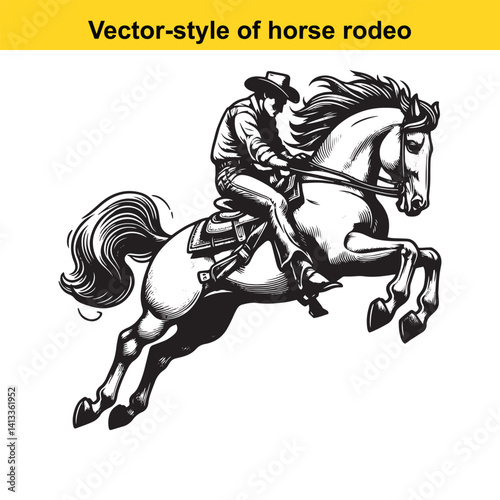Rearing Rodeo Horse Line Art – Black & White Vector Illustration