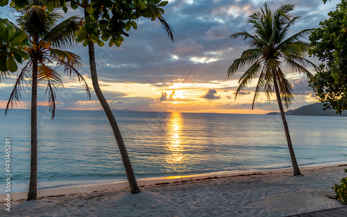 reathtaking Tropical Beach Sunset with Palm Trees - Exotic Travel Destination Relaxation