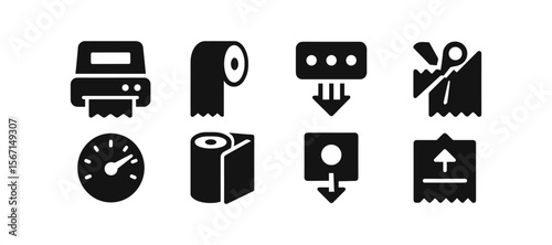 Receipt, printer solid icon set. essential transaction symbols in solid style