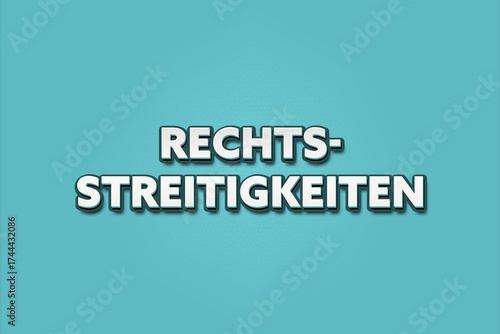 Rechtsstreitigkeiten (Litigation) - A turquoise banner illustration with white text.