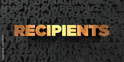 Recipients - Gold text on black background - 3D rendered royalty free stock picture. This image can be used for an online website banner ad or a print postcard.