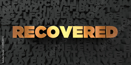 Recovered - Gold text on black background - 3D rendered royalty free stock picture. This image can be used for an online website banner ad or a print postcard.