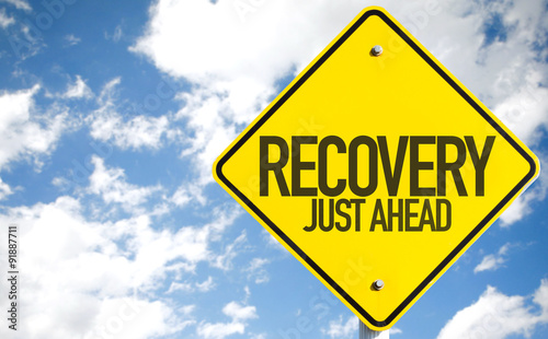 Recovery Just Ahead sign with sky background