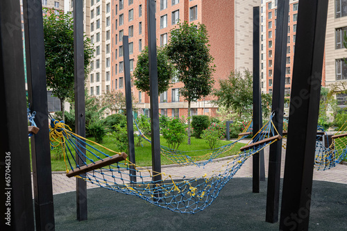Recreation space for children and adults and the appearance of the building of a multifunctional urban multi-apartment residential area the background of the development of the area