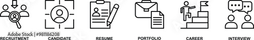 Recruitment banner web icon vector illustration concept with icon of Recruitment, candidate, resume, portfolio, career, interview