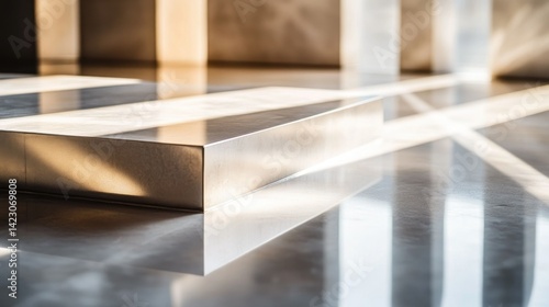 Rectangular architectural structure and reflected natural sunlight create shadows