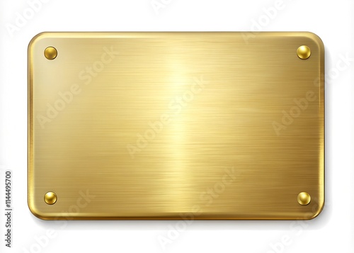 Rectangular gold metal plate with a smooth, polished surface and rounded edges, showcasing a reflective finish. Ideal for design and branding purposes. Isolated on white background