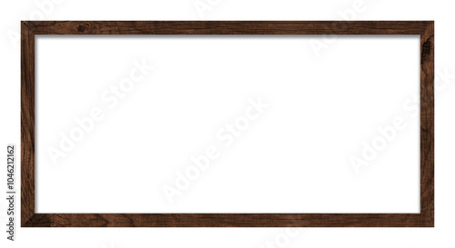 Rectangular picture frame. Old wooden frame, vintage style, with empty space and isolated transparent background with png.