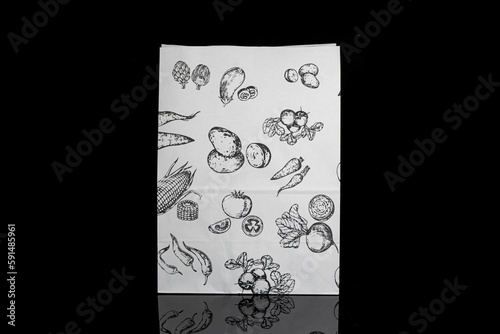 Recyclable craft paper bag for purchases, gifts and takeaway food mock up on black background. Environmentally friendly than single-use plastic bags