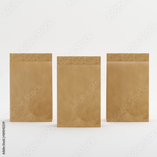Recycled Brown Paper Bag Mock-up Template On Isolated White Background, Ready For Your Design, 3d Illustration