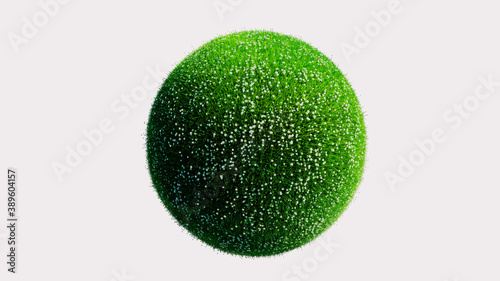 Recycling and environment concept where the whole world is covered with green grass and white flowers 3D rendering