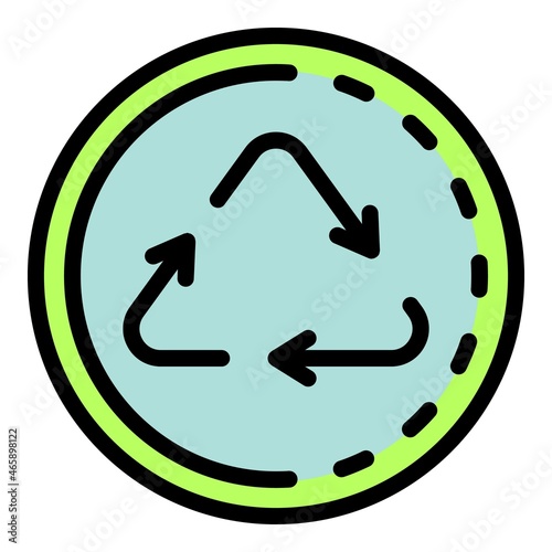 Recycling triangle in a circle icon. Outline recycling triangle in a circle vector icon color flat isolated