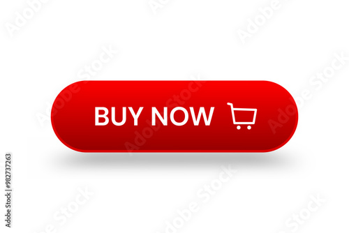Red 3d buy now button. Button element for web design and mobile devices. Vector illustration