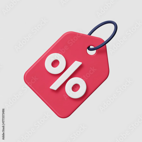 Red 3d render of percentage symbol on a price tag label representing retail discount, sale, promotion, and marketing campaigns.