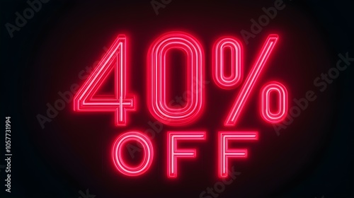 Red '40% OFF' Neon Sign on an elegant Dark Background